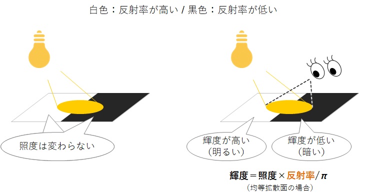 また、輝度は、物体の反射率にも大きく影響を受ける。