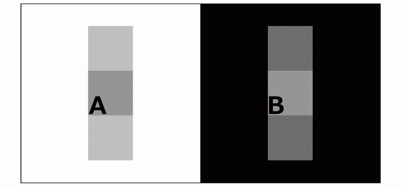 同じ輝度であっても、背景が明るい場合は対象は暗く見え、背景が暗い場合は明るく見える。