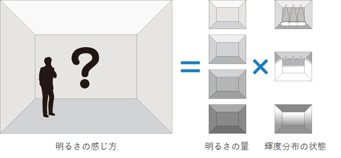 同じ照度であっても、空間の見え方や雰囲気が異なるのは、目に入る光の量、すなわち輝度やその分布が影響しているためである。