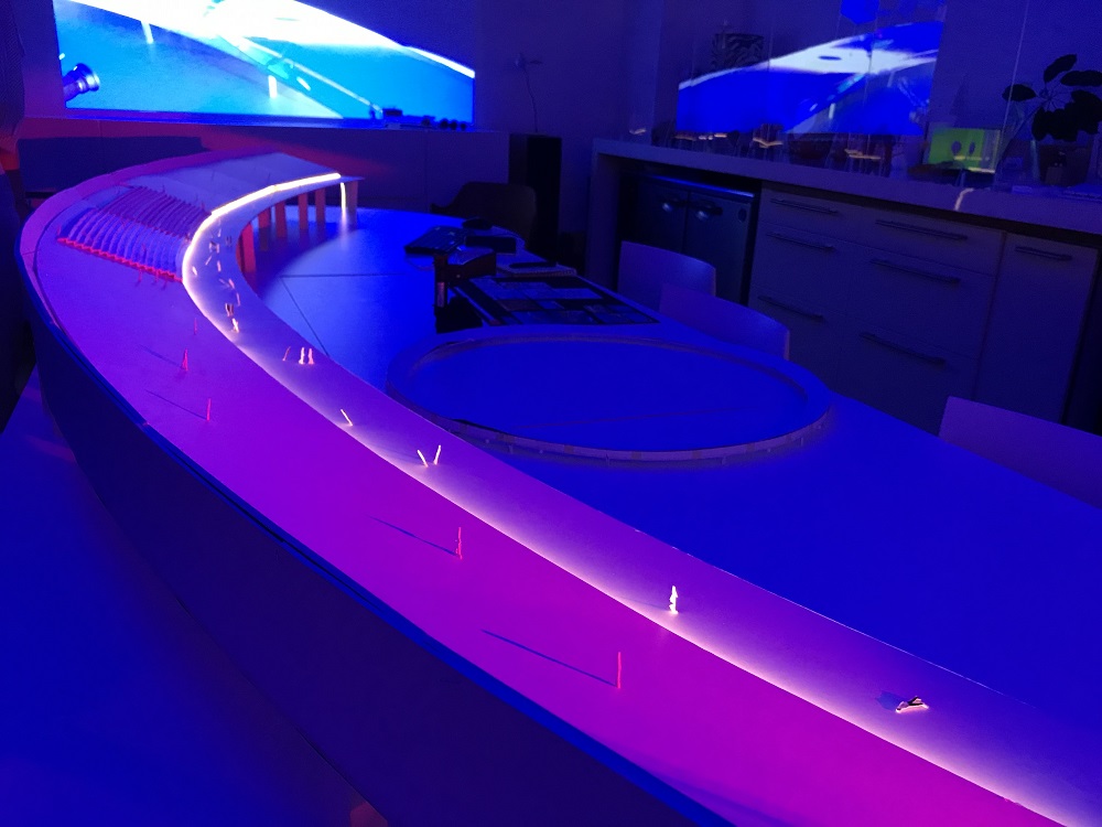 LIGHTDESIGNが製作した大屋根リングの100分の1模型(部分模型)。「対外的なプレゼンテーションには使っていません。自分たちの確認用に真っ先につくりました。模型を使いながら検討した照明デザインの方向性は、ほぼそのまま最終案になっています」(撮影:LIGHTDESIGN INC.)