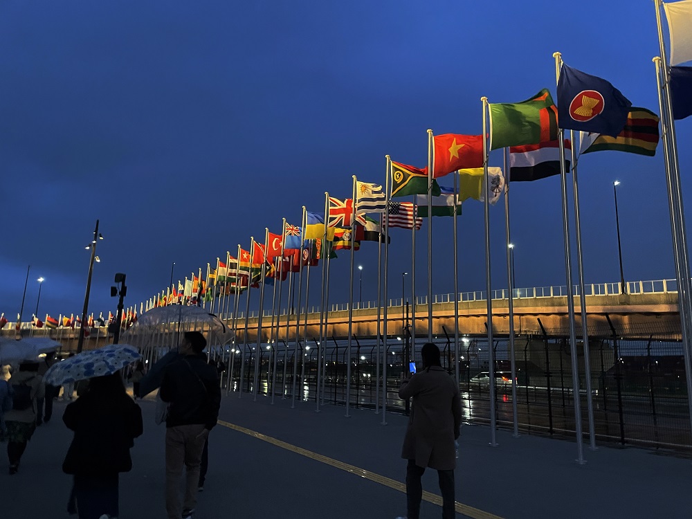 大阪・関西万博会場の東ゲートの外側に並ぶ国旗などの様子(撮影:LIGHTDESIGN INC.)