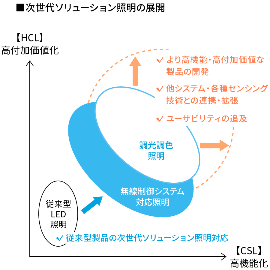 無線制御ソリューション照明のトップランナーとして、多様化するニーズに応える次世代ソリューション照明製品の新たな付加価値の追求と市場競争力の強化を図る
