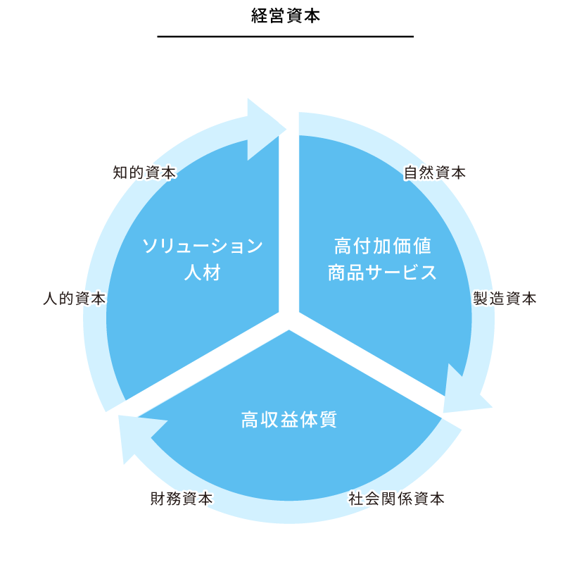 「エシカルソリューション」による提供価値での社会貢献を実現するために、それを生み出す経営資本の最大活用に取り組みます