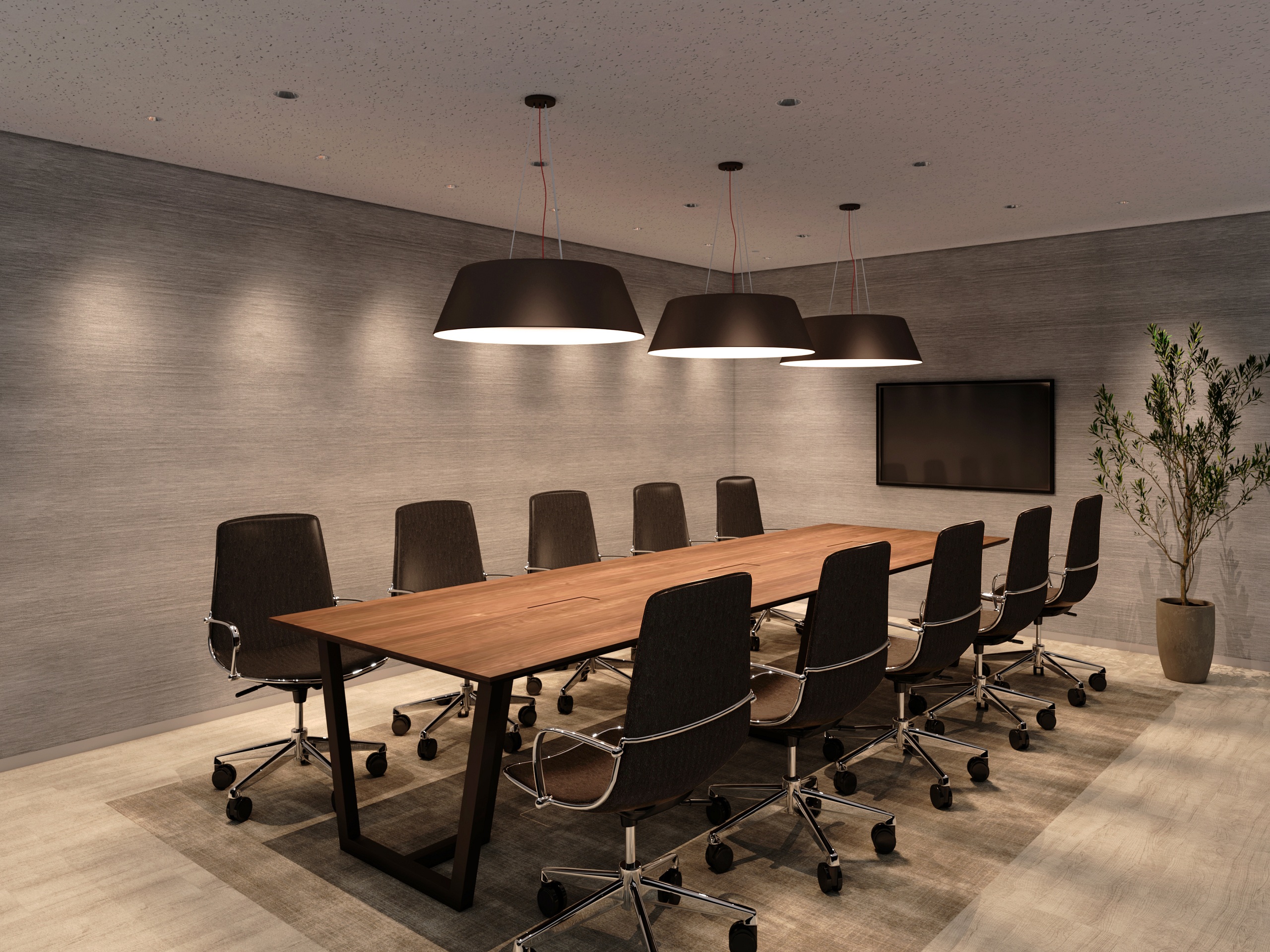 ペンダントの下向きの光でテーブル面をしっかり照らし、空間の重心を下げることで、集中しやすい会議環境をつくります。