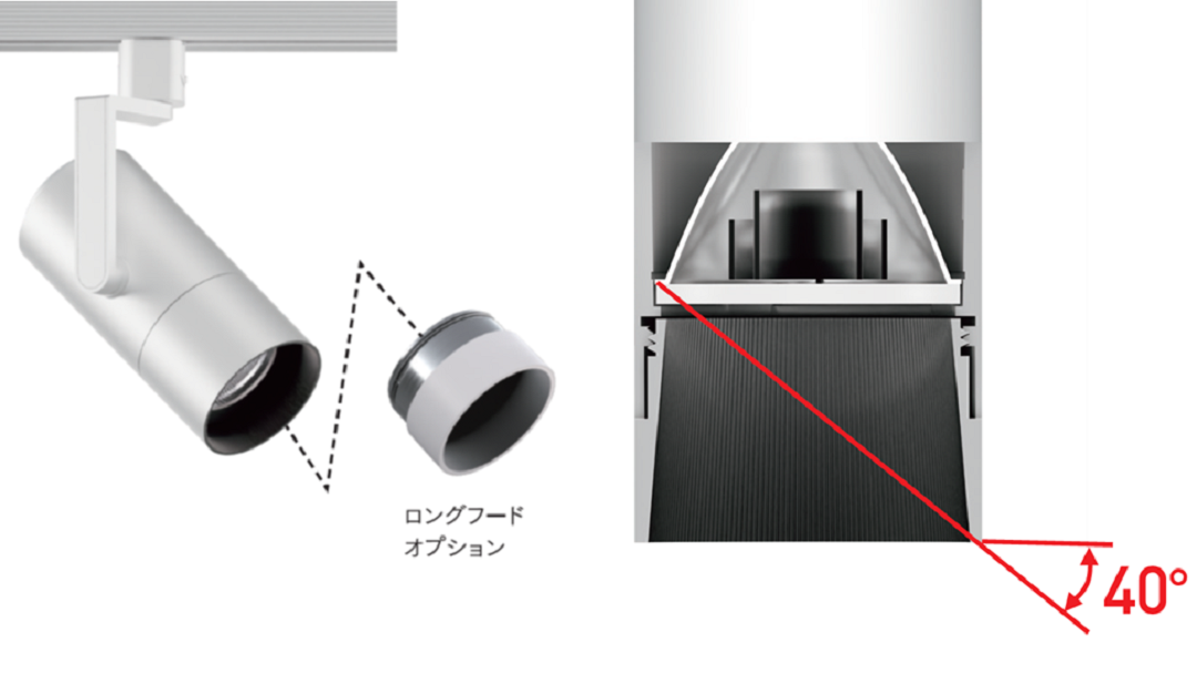 ロングフードオプションでまぶしい発光部を見えにくくし、ぎらつきを抑えた快適な光環境を実現。