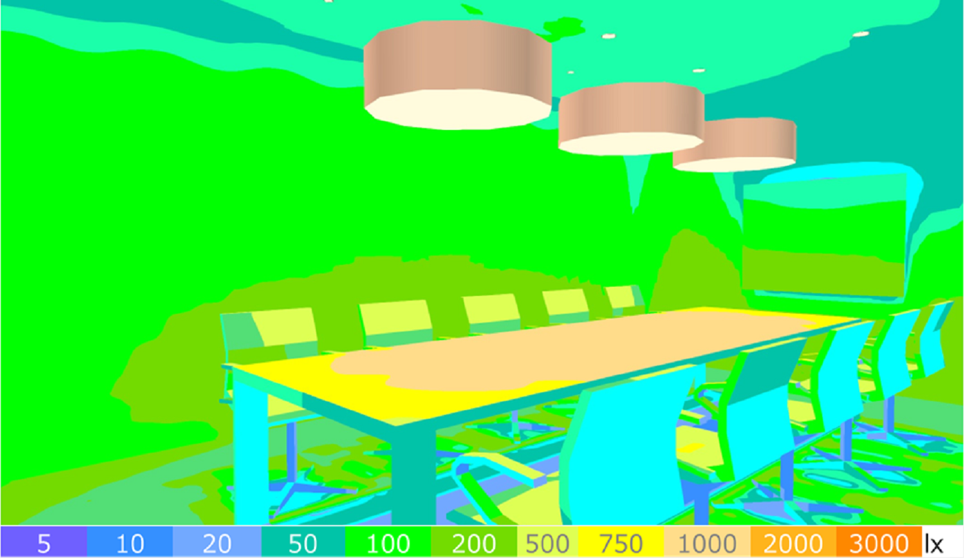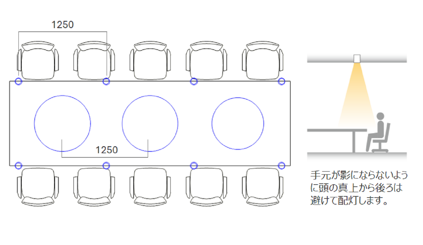 テーブル面を中心に光を届け、会議に適した明るさを確保します。