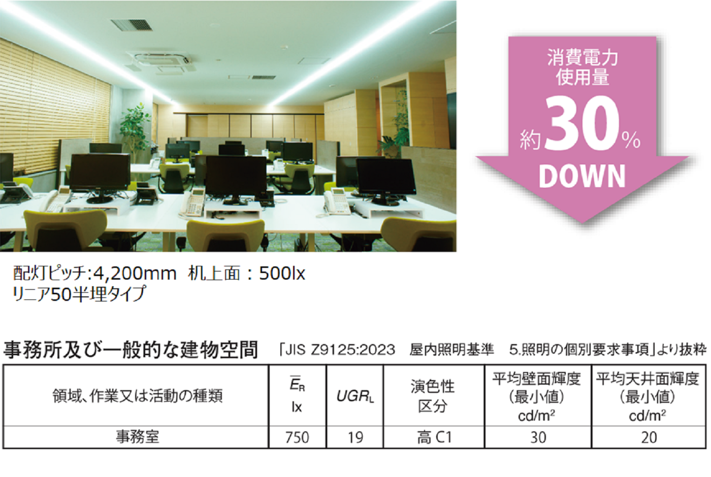 JIS基準に基づいた適切な輝度設計を行い、更に省エネを図る