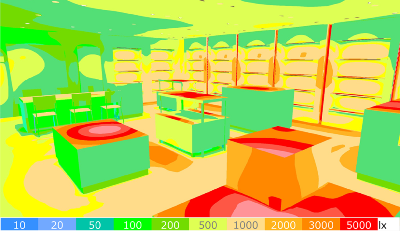 ベース照明で売場全体の明るさを確保しながら、商品ディスプレイには演出光を加えます。
