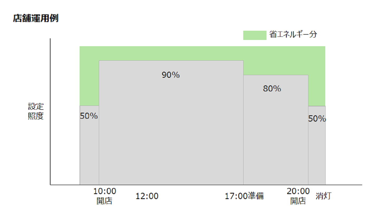 店舗では営業時間や時間帯によって、必要な明るさは変化します。