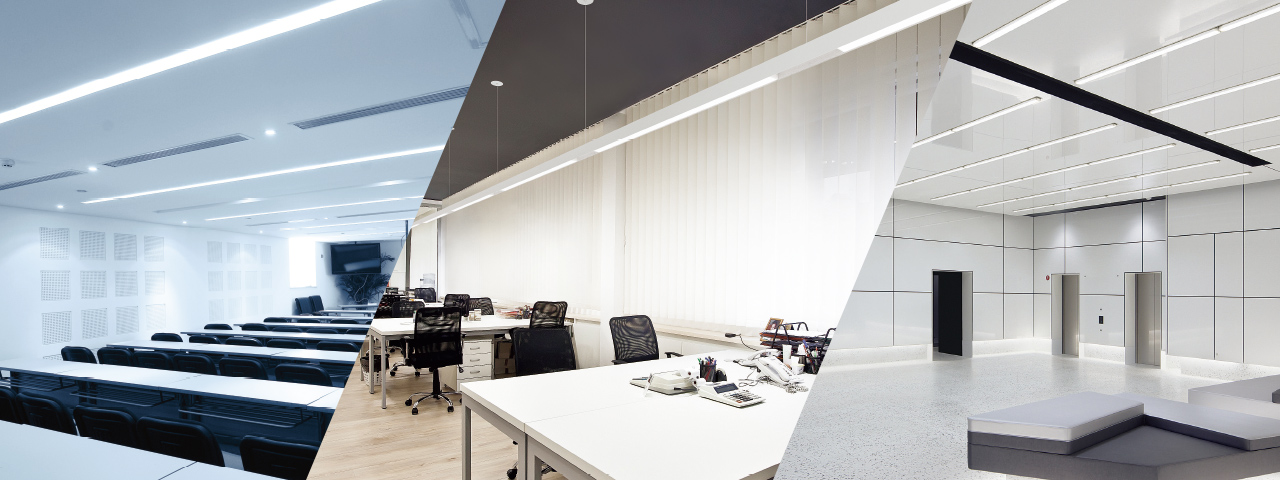 スリムな幅32mmタイプから、しっかり明るい幅70mmタイプ。さらには、直付、埋込、ペンダントなど。