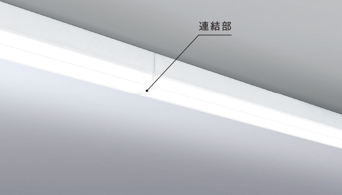 側面まで光るデザインにより連結時も継ぎ目の暗がりがなく、途切れのない光が、空間にダイナミックで美しい光のラインを描きます。