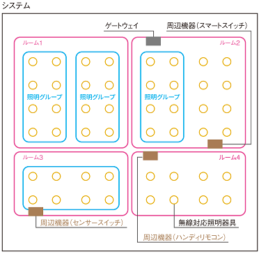 飲食店・物販店、オフィス、マンション共用部など、小~中規模施設に最適な無線制御システムです。