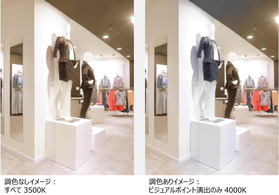 VPポイントなど目立たせたい箇所は明るく、通路は抑え目にする等、店内の明るさバランスを細かく調整することができます。