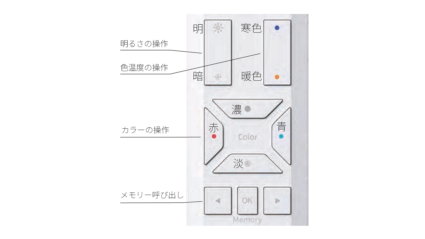 寒色/暖色ボタンで色温度を調整します。色温度の範囲は採用する照明器具により異なります。