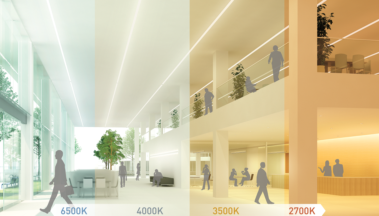 集中力を高めたり、数値など精密作業のミス防止には白色系の光が、クリエイティブな発想やディスカッションをするときなどはリラックスする低色温度の光が適しているという研究結果があります。