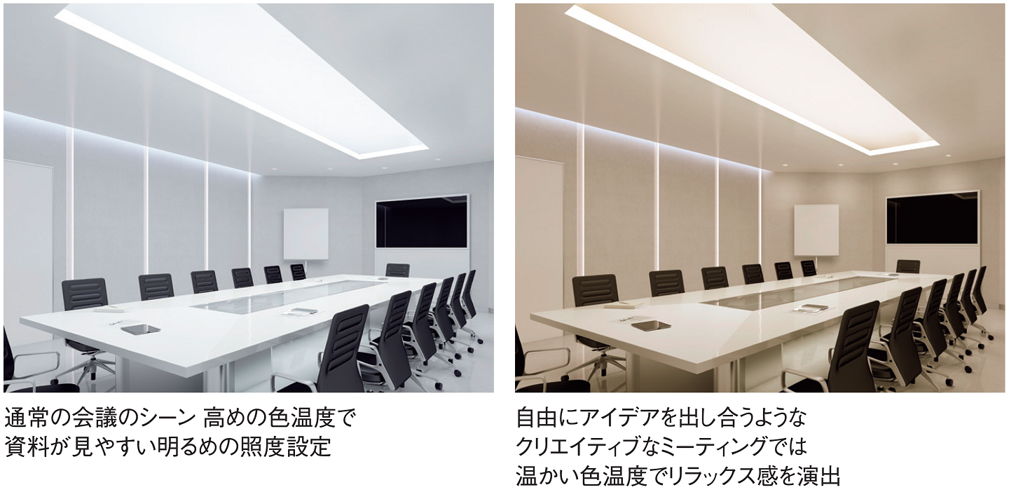 会議の内容やシーンに合わせて光を選択し、光でコミュニケーションや生産性を育みます。