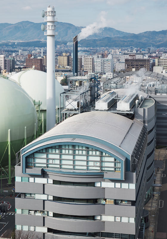 京都リサーチパーク(KRP)は、大阪ガス京都工場跡地5.6haに新産業創出拠点・産学公連携拠点とし、380社・団体(2015年12月時点)が集う全国初の民間リサーチパークとして1989年に誕生した施設である。アステラス製薬 京都朱雀事業所は、KRP内の未利用スポーツ施設を研究所へコンバージョンし、2015年5月に竣工。スポーツ施設の天井高さを有効活用し、快適で省エネルギーな先端施設へと生まれ変わった。