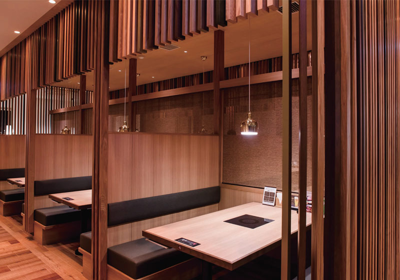 「幸せな“団らん”という時間を社会につくりだすこと。」をコンセプトとするワン・ダイニングが展開する「きんのぶた」。ヘルシーとおいしさにこだわった、テーブルオーダー式の食べ放題しゃぶしゃぶの店で、食材へのこだわりはもちろんのこと、照明や廊下の広さまで、くつろぎにも同様にこだわっている。宴会用の大きな部屋はなく、家族や大切な人同士が団らんを楽しんでいただくための場所でありたいから、すべてを“半個室”に。内装デザインはモダンとスタイリッシュを基調に、和のテイストを調和させた空間としている。このように、お客様にとって更に気持ちいい店舗であり続けたいと考える当店が、今春アクロスプラザ八尾に新たにオープンした。
