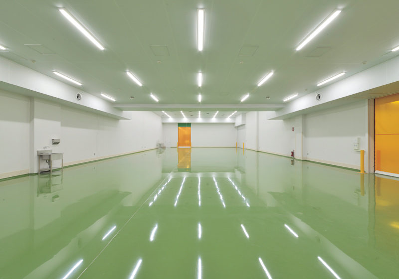 埃だまり防止と高気密を追求した 食品工場仕様のLED照明