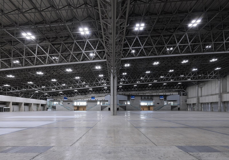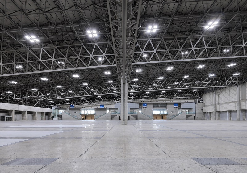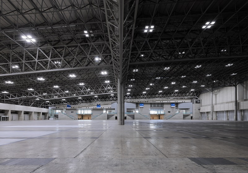 見本市・展示会から大規模な式典・集会、コンサートまでさまざまなイベントが開催される幕張メッセの国際展示場。展示ホールは全部で11ありますが、その中の7と8、二つのホールの高天井用照明器具計360台をLEDに交換。同時に無線制御システム『Smart LEDZ Fit Plus』と、その拡張機能として一元管理を導入しました。今まではホール内で一部分の照明を消灯したいというご要望があった際には、従来光源のランプを抜く等でしか対応することができませんでした。ランプを抜く作業は高所作業車を使用する必要があり、展示会と展示会の合間の時間がない場合等はお断りをせざるを得ません。この制御システムの導入によって、各ホールで開催される展示会主催者は、主催者室に設置されているパソコン画面にて、照明の明るさや点灯範囲を自在に変更できるようになり、より展示内容に即した照明表現ができるようになりました。さらに、総合管理センターで各展示ホールの照明器具を一括制御できるようになったことも大きなメリットです。一括制御によって、展示会が終了した後、展示会ごとで調光された照明を、ホールまで出向かなくても元に戻すことが可能となりました。幕張メッセクラスの大型施設となりますと、総合管理センターから各ホールまでは長い距離があり、歩いて行くのも大変でしたので、かなりの労力軽減となりました。大型施設において、多様な展示会やイベントを効果的に演出でき、効率的に進める制御と一元管理は必要不可欠と思います。今後4年から5年かけて、展示ホール1~6・9~11も無線制御によるLED化を検討中です。