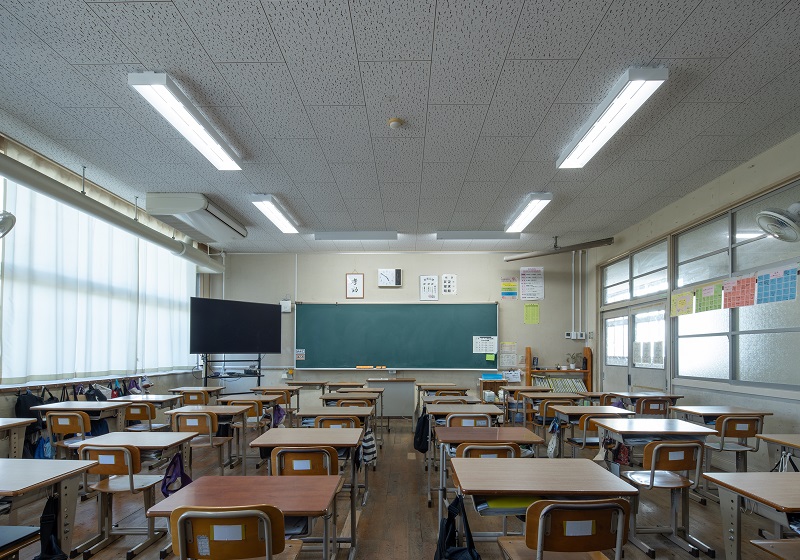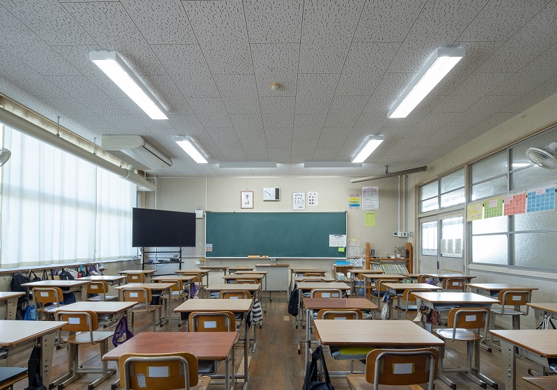 大村市では、児童生徒の学習環境向上と省エネルギー化の推進を目的とし、市立小中学校16校の照明をLED化する更新事業を実施した。本事業では、コストを重視しつつも、新たな付加価値を持つ照明環境の実現を目指し、調光調色照明を採用。教職員の健康維持にも貢献する、先進的な光環境を整備することができた。