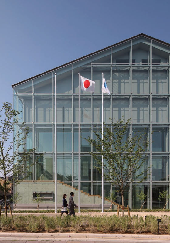 さかい利晶の杜は堺市の観光拠点として企画され、堺観光案内展示、千利休・与謝野晶子展示室、茶の湯体験施設から構成されています。堺は伝統ある都市であるとともに「もののはじまりなんでも堺」という進取の気風を持っており、さかい利晶の杜の建築は、「家型」や「土壁」など伝統的な形態や素材が、ガラスや金属パネルと同じ場所にあることで「堺」を象徴しています。