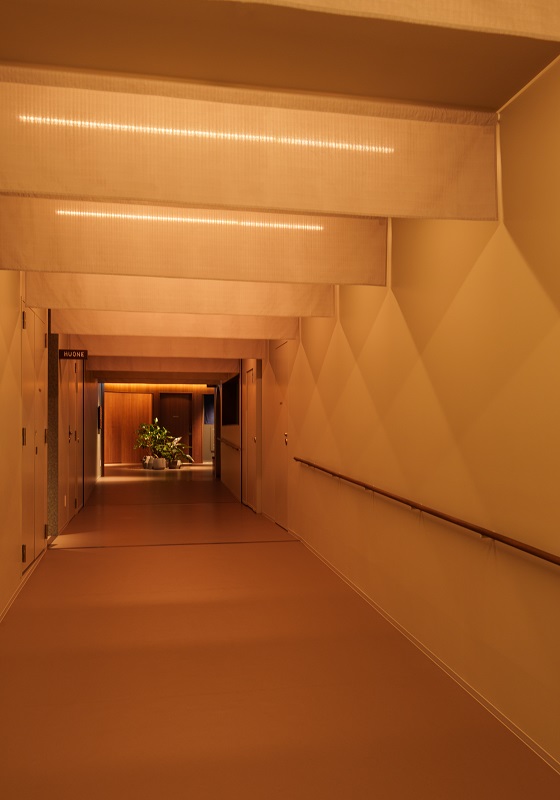 無線制御システム「Smart LEDZ Fit Plus」を採用し、用途や時間帯に応じて光環境を最適化。本システムのスケジュール運用により、刻々と変化する自然光や施設の利用状況に合わせ、各エリアの点灯パターンを自動制御している。信号線工事が不要な無線制御の特性を活かし、サウナ室からワークスペース、アロマラボまで、複雑なエリア構成においても柔軟なグルーピングと滑らかな階調制御を実現した。